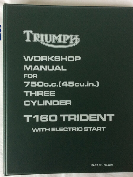 Genuine new old stock (NOS) Factory Workshop Manual suitable for 750cc Triumph T160 Trident models from 1975-76. 4 Ring Binder Type.
