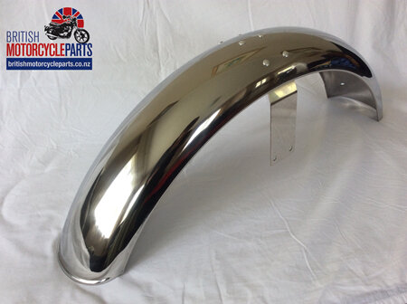 Genuine stainless steel Front Mudguard Assembly with Stainless Steel Bridge and two holes as fitted to Norton Commando MK3 models.