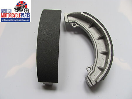Pair of brake shoes suitable for BSA A50, A65, A70 and Triumph T100, TR6, T120 & T150 models from 1968-70 with 8″ full width twin leading shoe (TLS) front hubs.