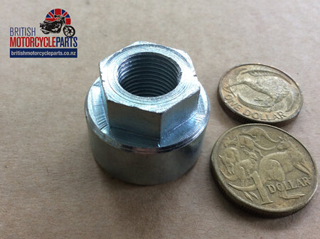Rear Wheel Axle Spindle Nut as fitted to BSA A50 & A65 Unit Twins from 1966-70 and BSA Unit Singles (C25, B25, Star Fire, Victor, Enduro, B44, Shooting Star, Barracuda, etc, from 1967-70 with QD rear wheel. Also fits Triumph TR25W Trophy models from 1968-70.