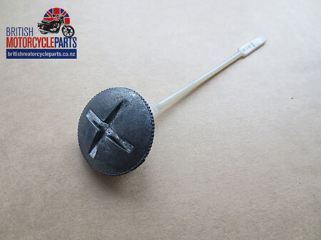 Oil filler cap and dipstick assembly suitable for BSA and Triumph Oil in Frame models from 1971 onwards. Metal dipstick.