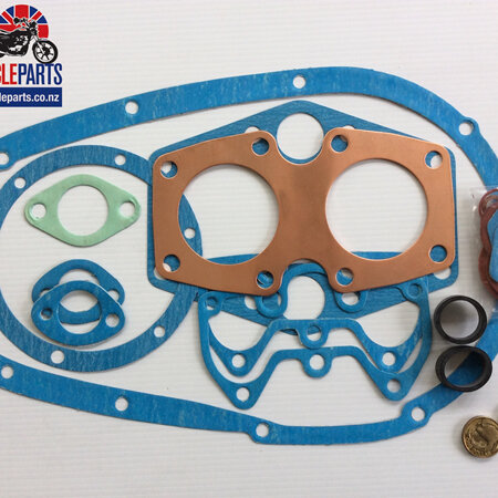 Engine gasket set suitable for 350cc Triumph 3TA & T90 models from 1957-63. Comes complete with standard Solid Copper Head Gasket, Push Rod Seals, Copper Washers, etc.