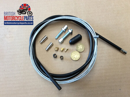 High quality imperial clutch cable kit includes standard black conduit with Teflon liner, inner wire and selection of imperial fittings. One end of the inner wire is fitted with a barrel nipple. The other end will need to be cut to length and the required nipple soldered in place. The ferrules and adjusters are a snug fit on the conduit. They can be bonded in place during the assembly or use a centre punch to make a small indentation in their side. The fittings can be adapted for a range of models. Basic soldering kit is needed to solder the nipples in place.
